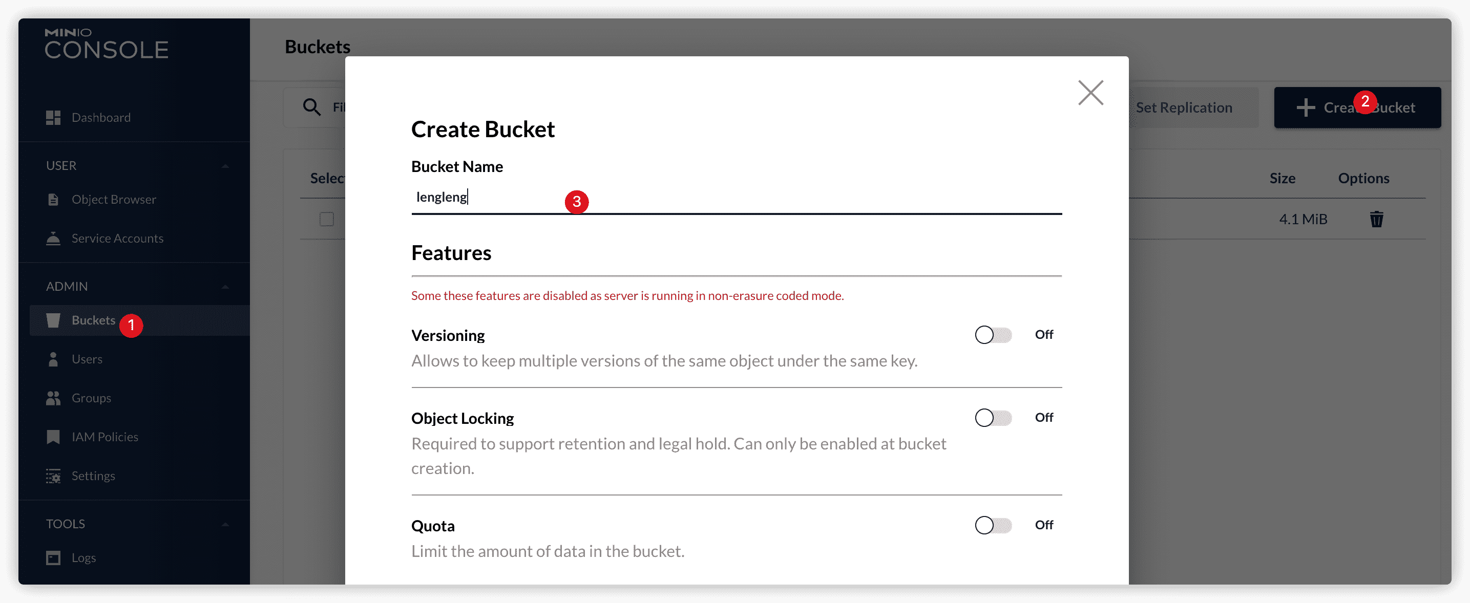 # 创建 Bucket (存储空间)